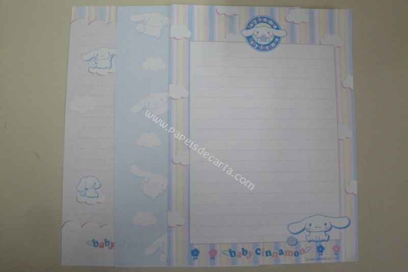 Conjunto importado, de papel de carta com 3 folhas diferentes do Cinnamoroll.