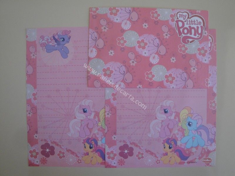 Conjunto, de papel de carta com 2 folhas iguais e 1 envelope do My Little Pony.