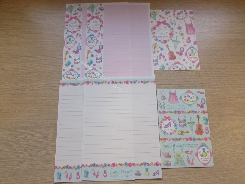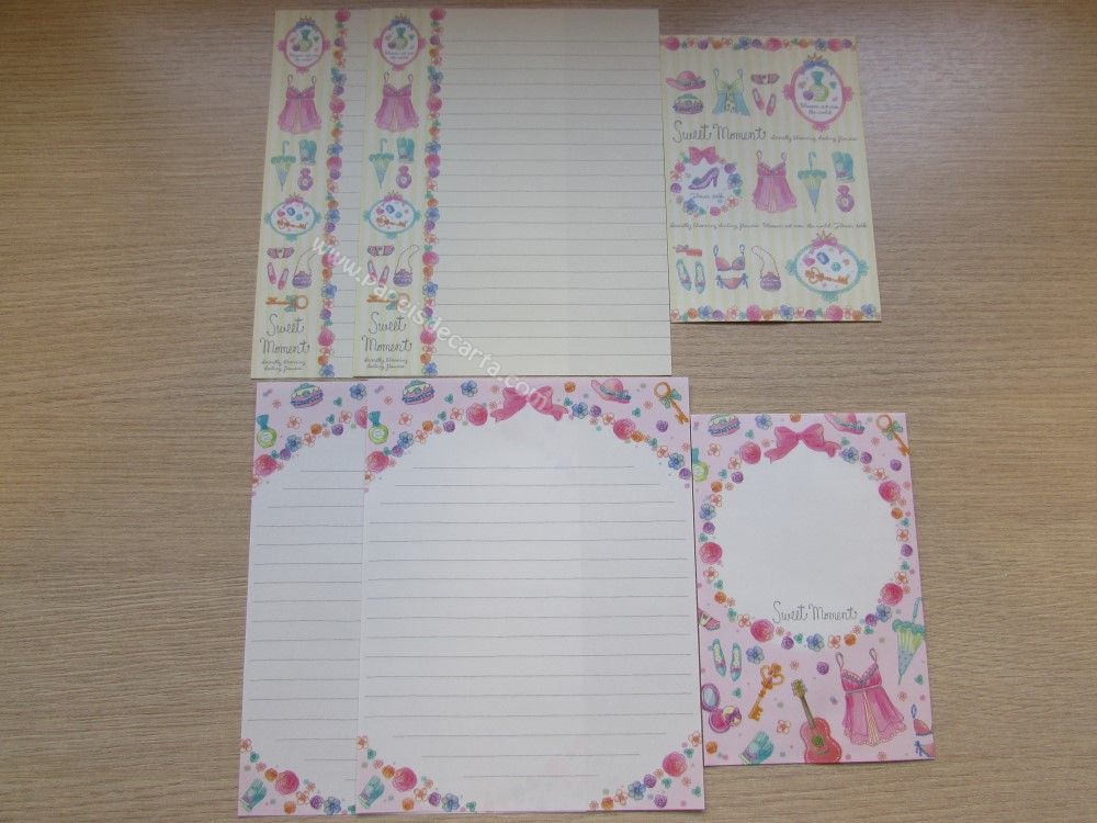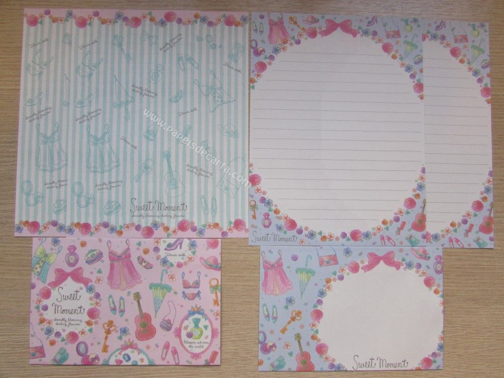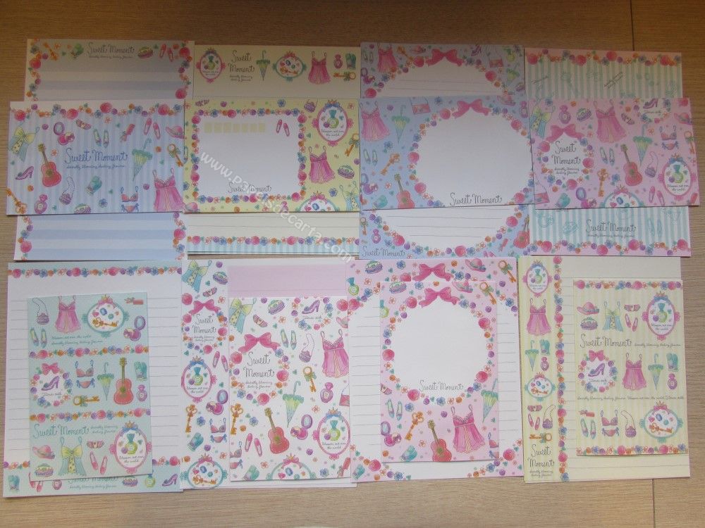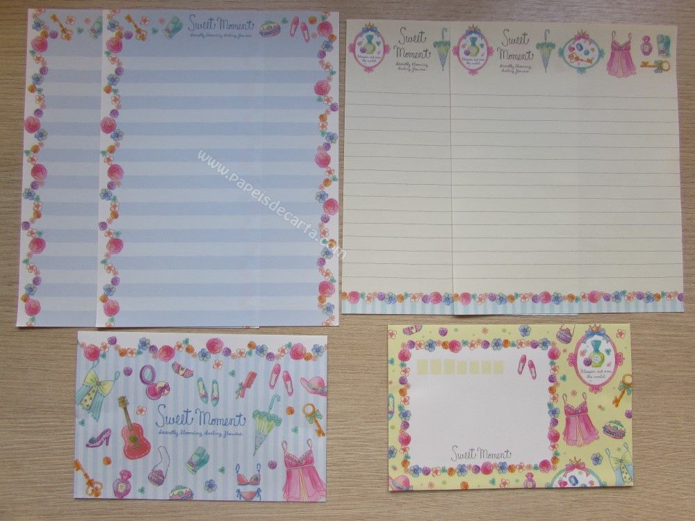 Lote com 8 conjuntos de papel de carta importado, sendo 2 folhas iguais e 1 envelope cada conjunto. COLEÇÃO SWEET MOMENT - Q-LIA