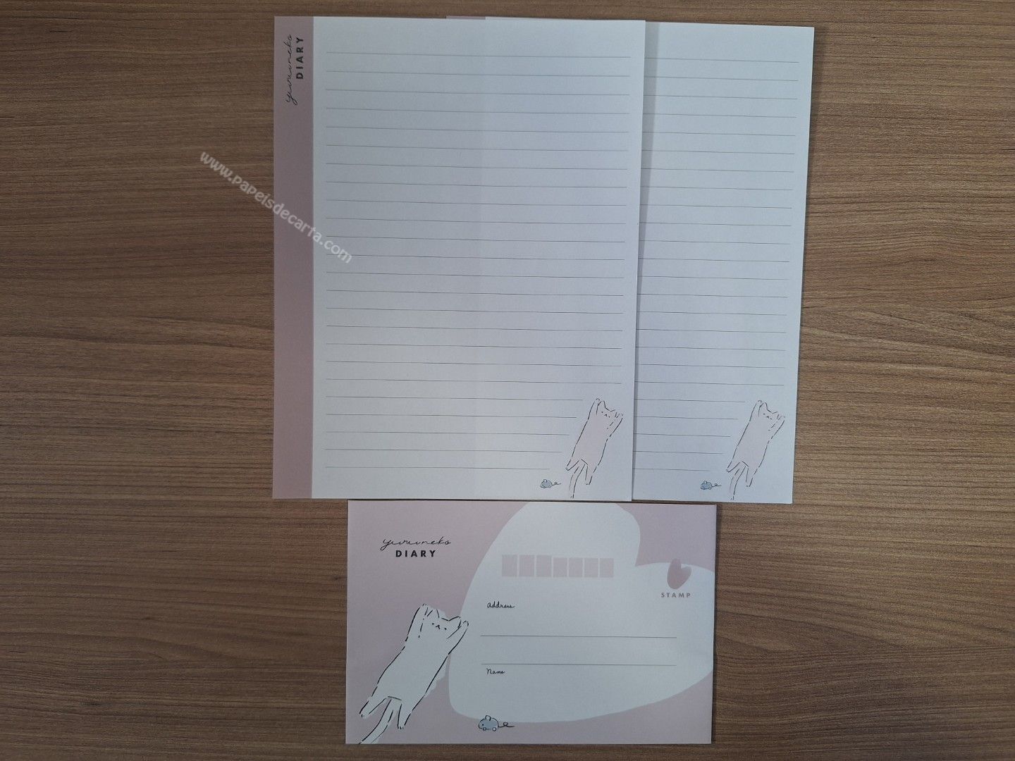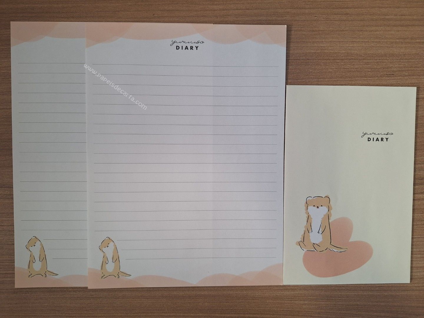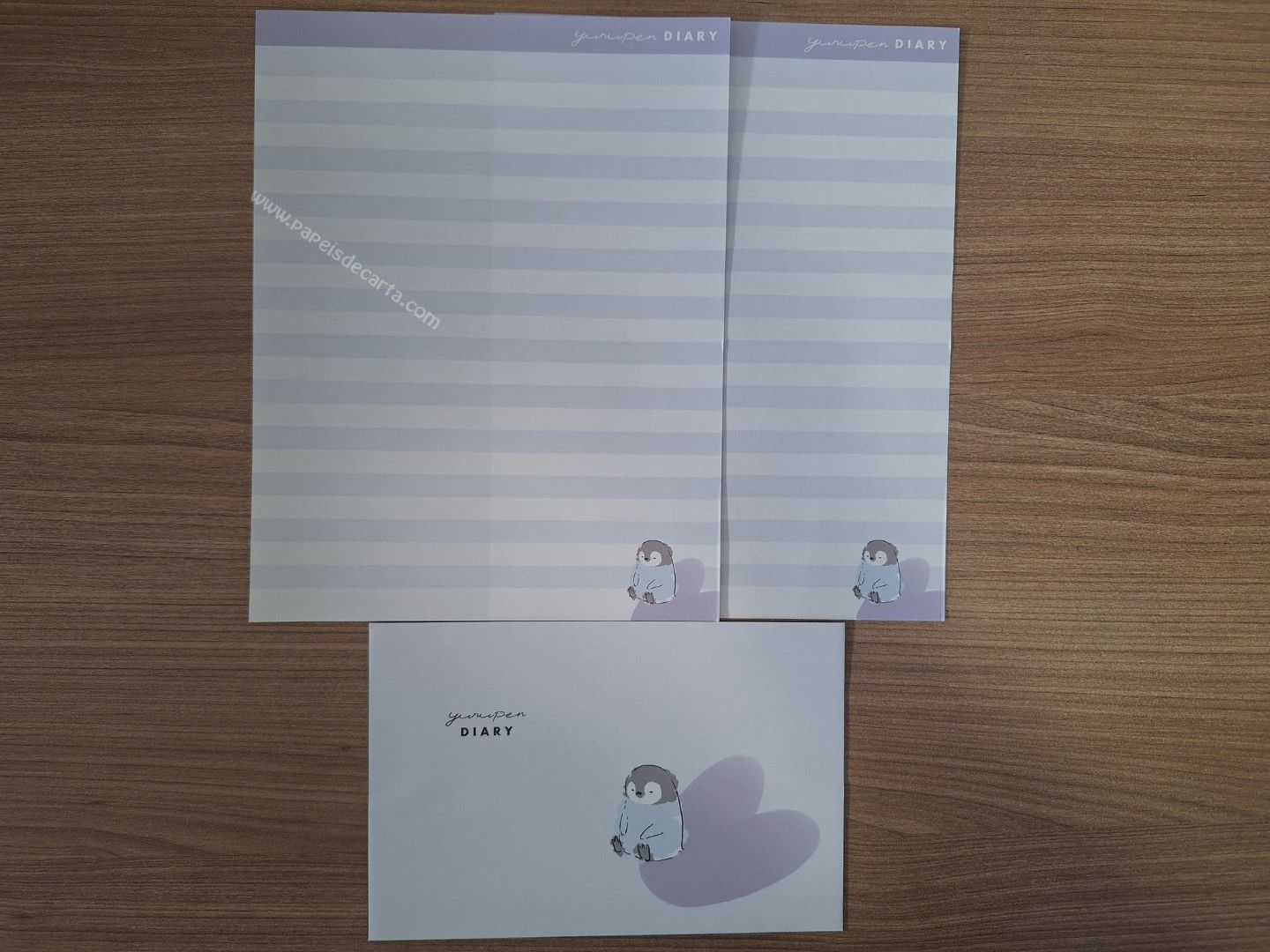 Lote de papel de carta importado com 5 conjuntos, sendo 2 folhas e 1 envelope cada conjunto, da coleção Yurupen Diary - Crux