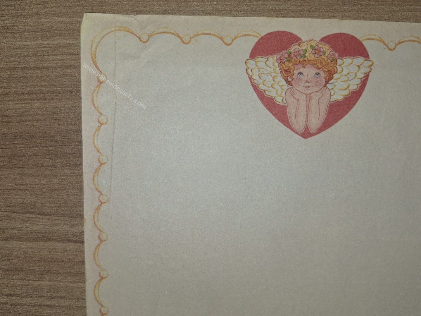 Lote de papel de carta antigo, da coleção anjos com 6 papéis diferentes, sendo 1 grande e 5 médios.