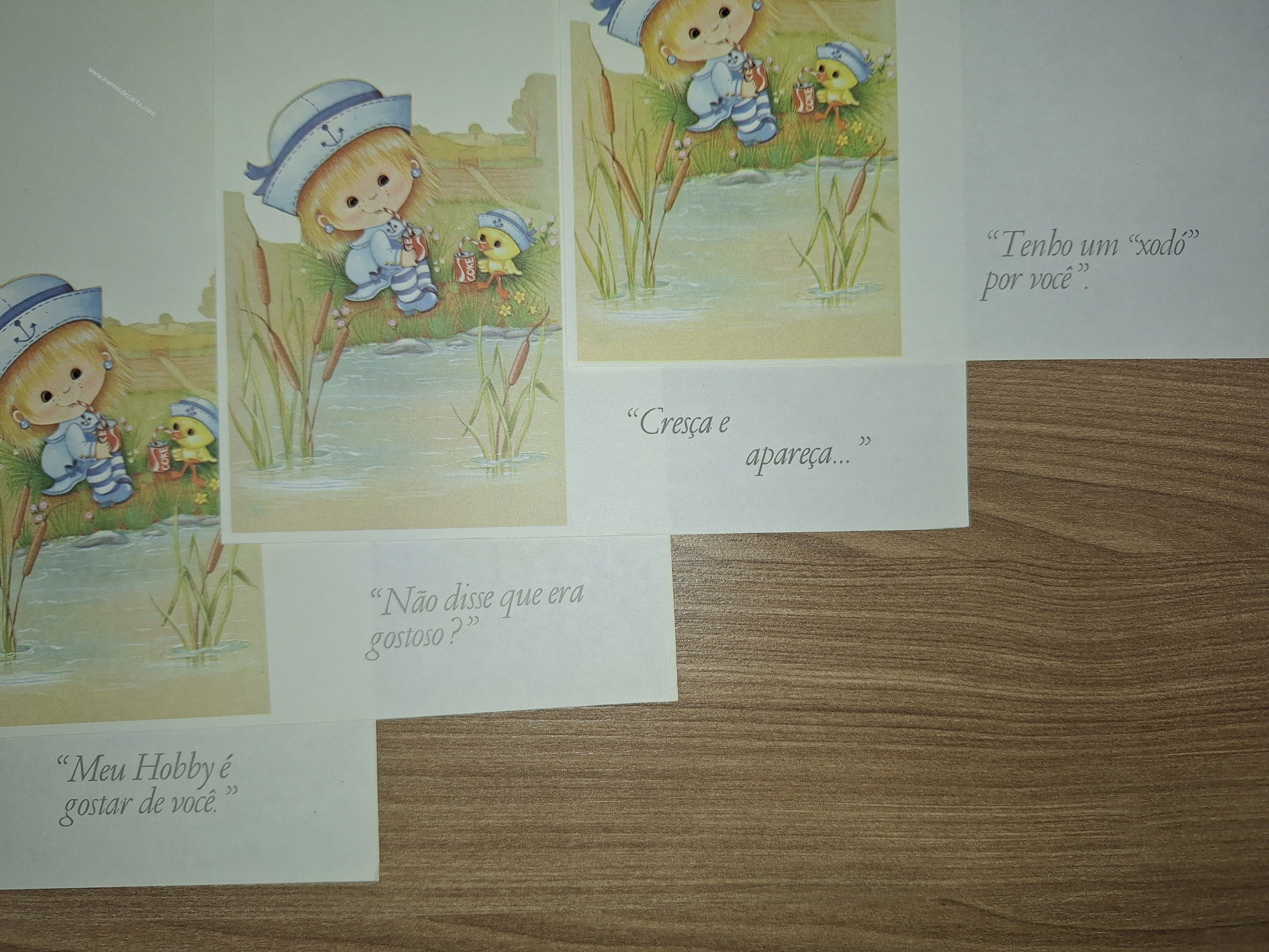 Lote de papel de carta antigo, com 4 papéis diferentes, tamanho médio. Os desenhos dos papéis de carta são iguais, mas as frases são diferentes.