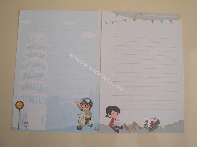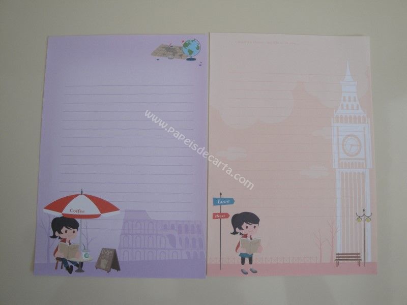 Conjunto com 10 folhas diferentes de papel de carta importado.