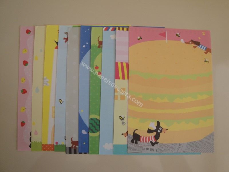 Conjunto com 10 folhas diferentes de papel de carta importado.