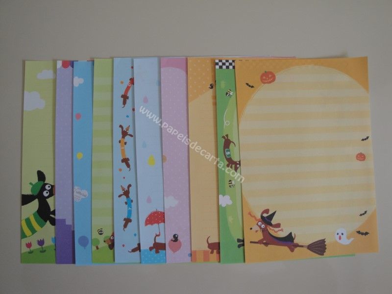 Conjunto com 10 folhas diferentes de papel de carta importado.