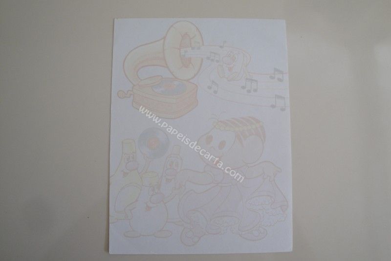 Papel de carta antigo, modelo raro, da coleção Turma da Mônica, sem numeração, com a Mônica dançando.