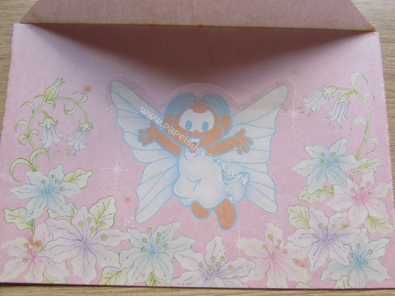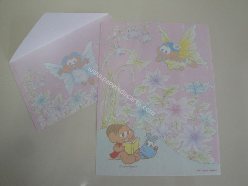 Conjunto antigo, de papel de carta com 1 folha média e 1 envelope da Turma da Mônica, com a Mônica lendo e a Magali de fada. Possui a numeração MPCD - 50164-9. ** A PONTA DIREITA DA PARTE DE CIMA DO PAPEL POSSUI MARCA DE DOBRA.**