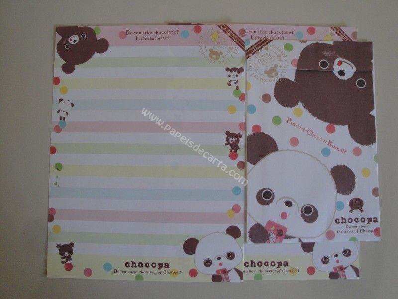 Conjunto importado, de papel de carta com 2 folhas iguais e 1 envelope do Chocopa.