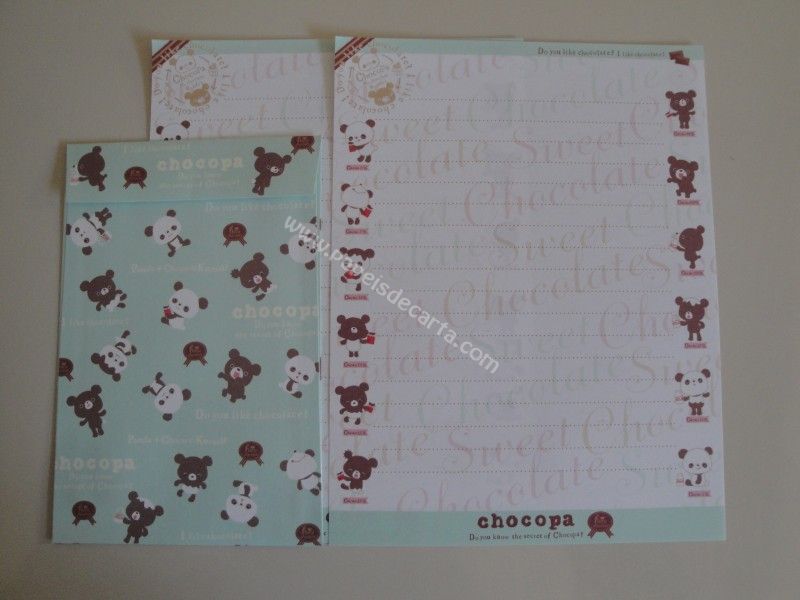 Conjunto importado, de papel de carta com 2 folhas iguais e 1 envelope do Chocopa.