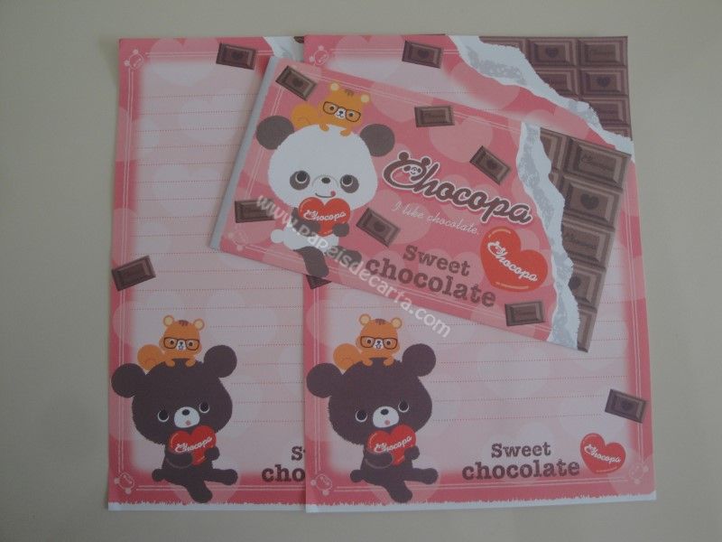Conjunto importado, de papel de carta do Chocopa, da San-X, com 2 folhas iguais e 1 envelope.