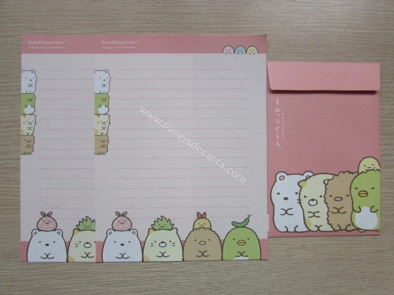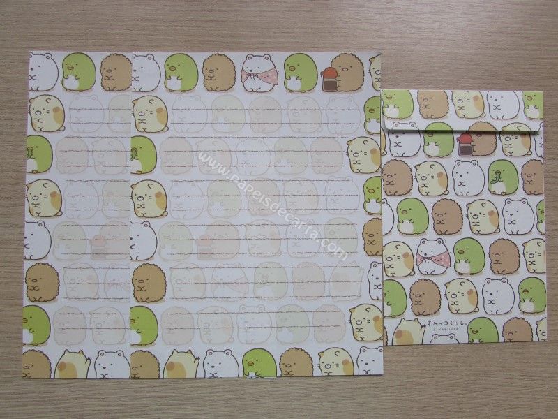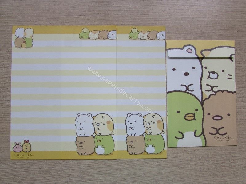 Lote com 4 Conjunto importado, de papel de carta do Sumikko Gurashi da San-X, com 2 folhas iguais e 1 envelope.