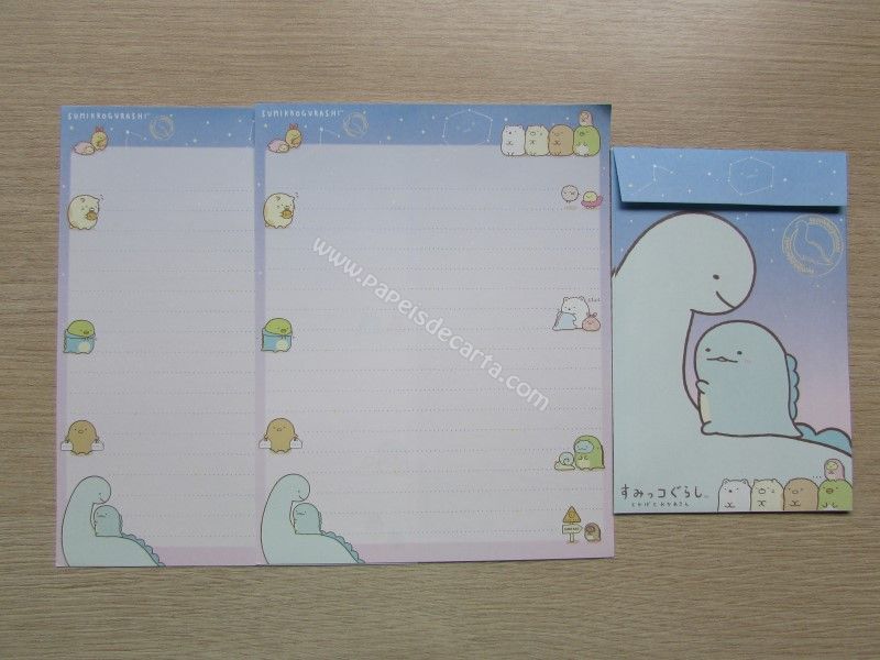 Lote com 4 Conjunto importado, de papel de carta do Sumikko Gurashi da San-X, com 2 folhas iguais e 1 envelope.