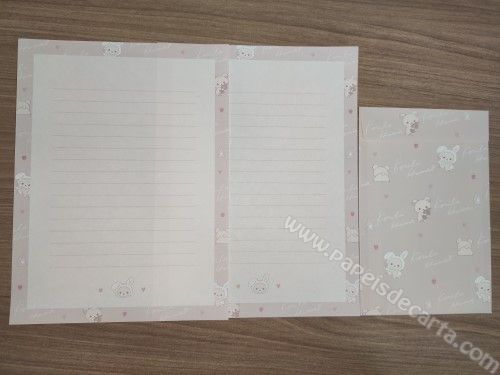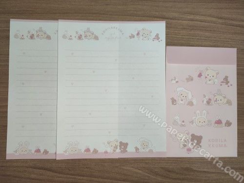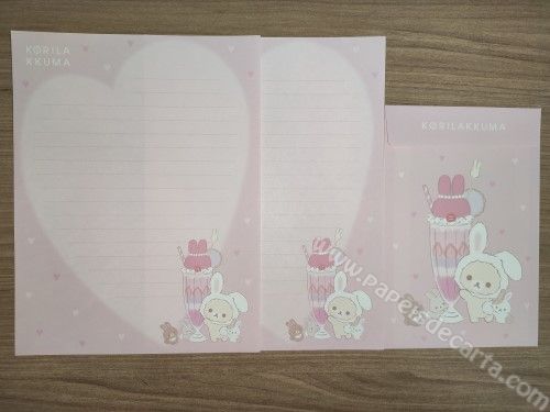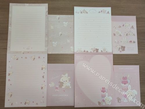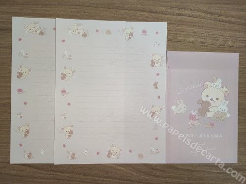 Lote com 04 Conjunto importado, de papel de carta do Korilakkuma da San-X, com 2 folhas iguais e 1 envelope cada conjunto.