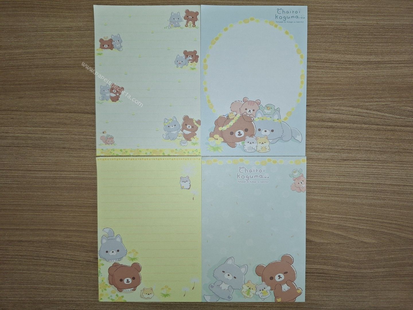 Lote com 4 papéis pequenos importados do Chairoikoguma da San-X, com 4 folhas.