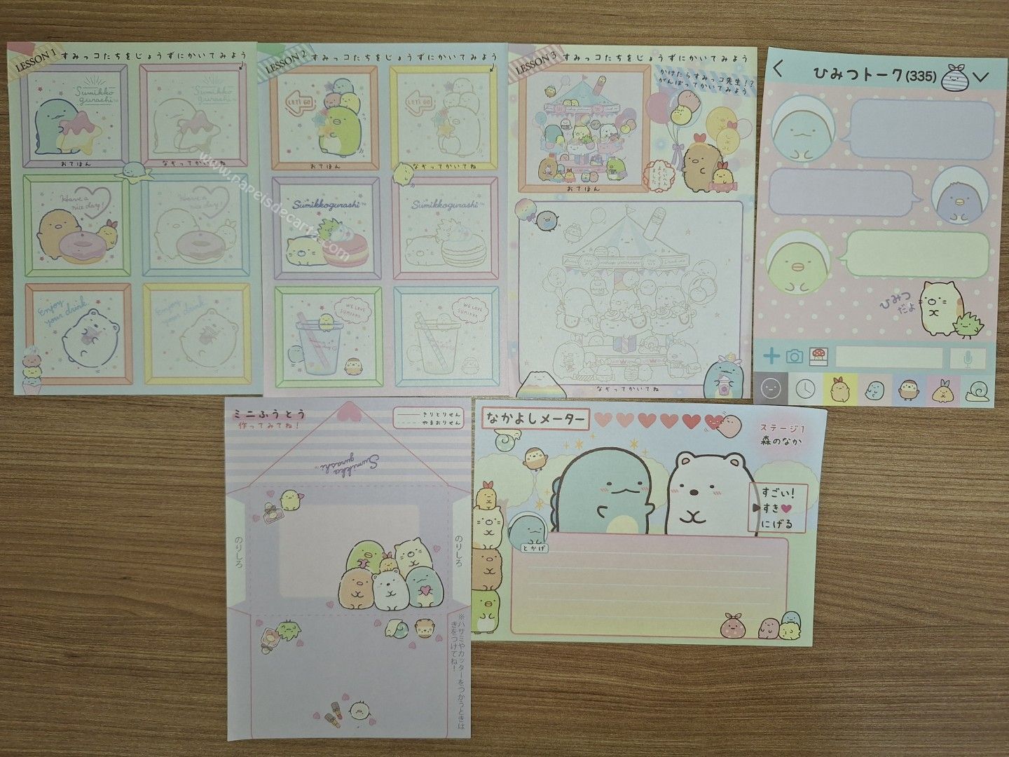 Lote com 6 papéis de carta diferentes, tamanho pequeno do Sumikko Gurashi da San-X.