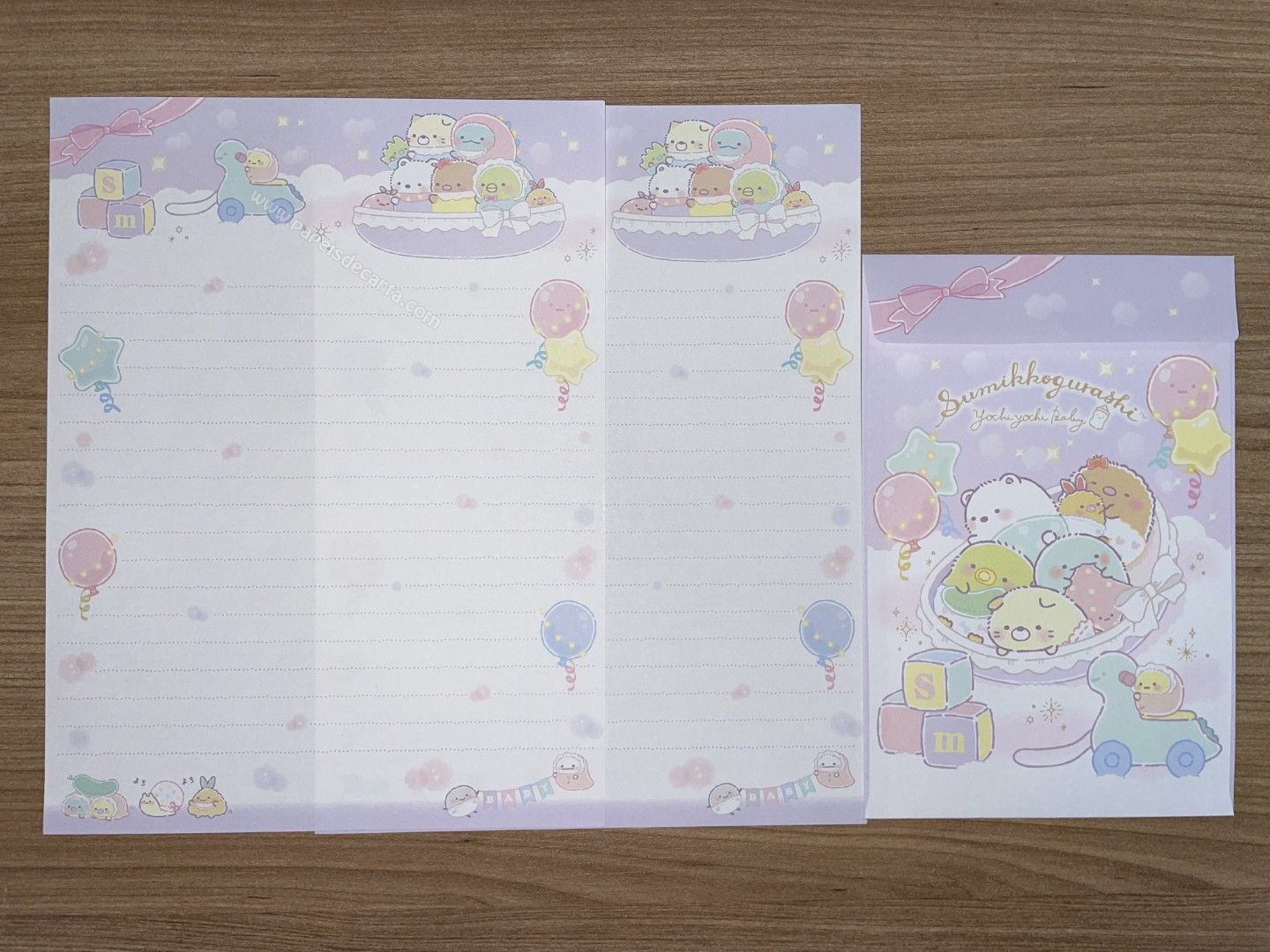 Conjunto importado, de papel de carta do Sumikko Gurashi da San-X, com 2 folhas e 1 envelope.