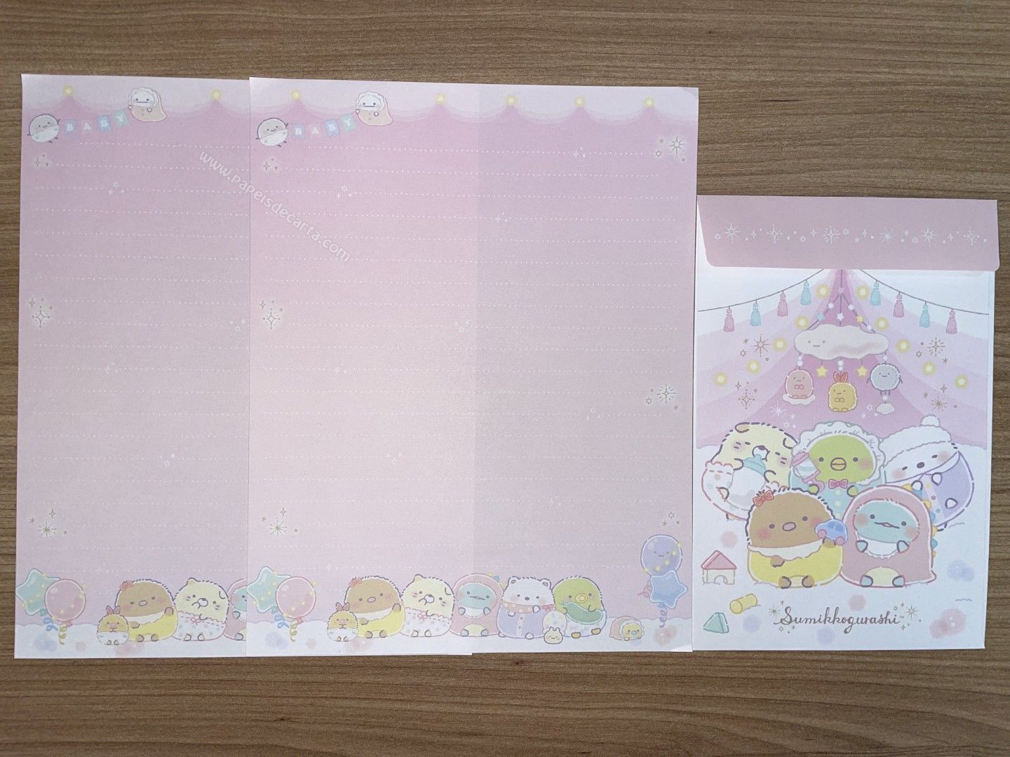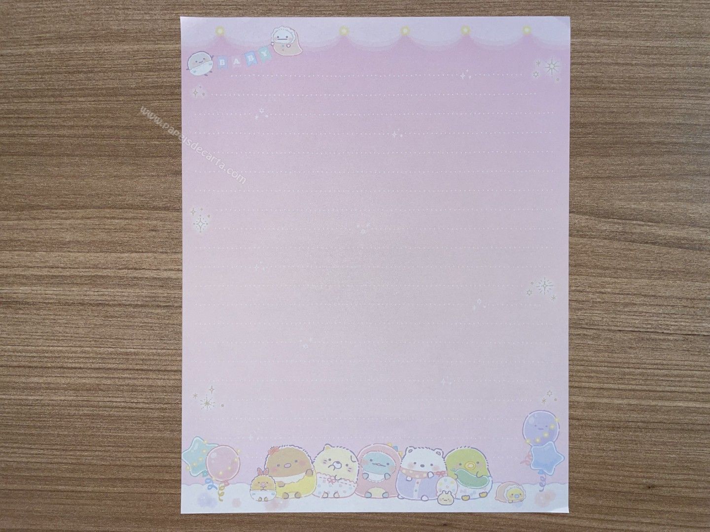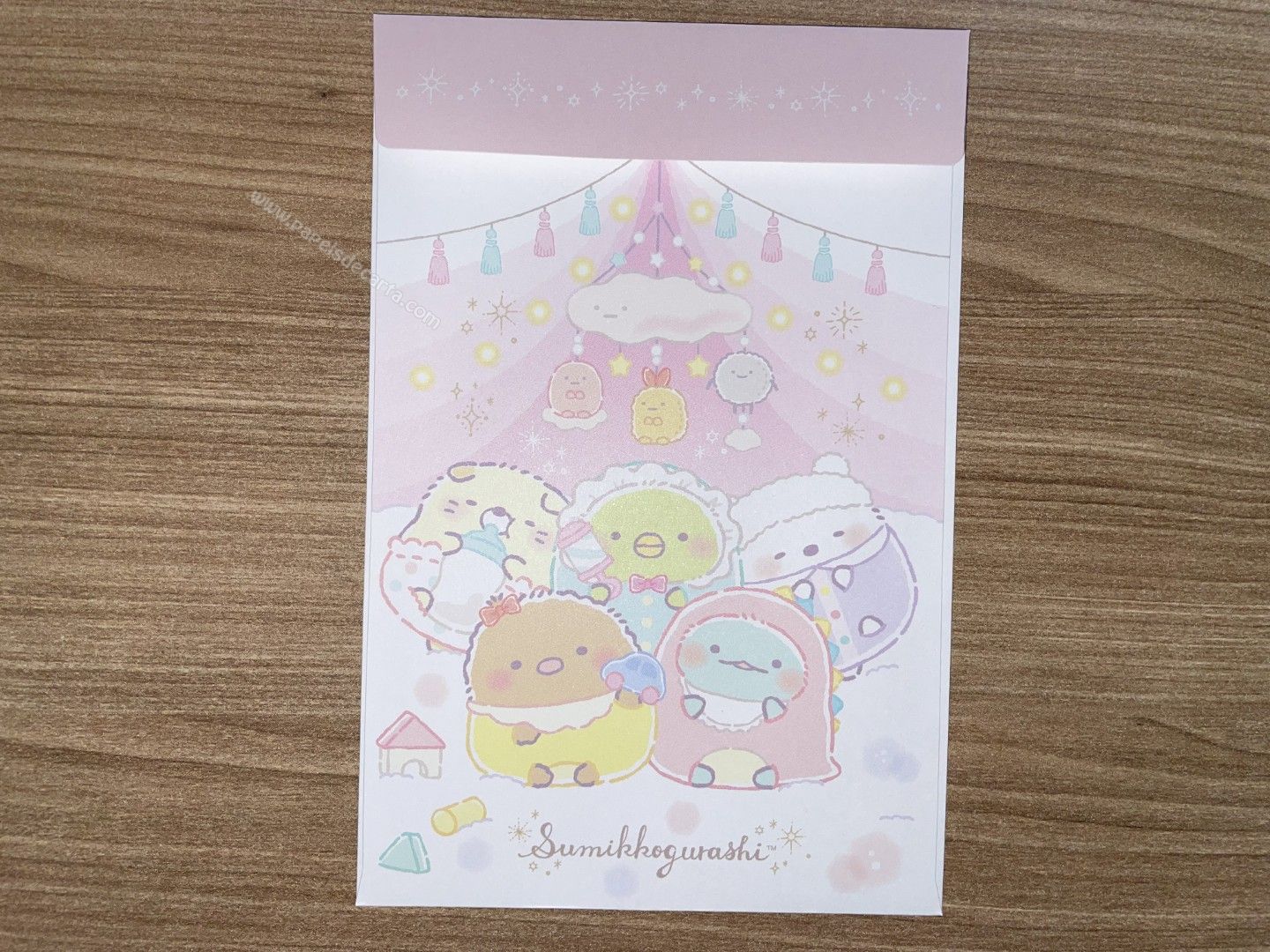 Conjunto importado, de papel de carta do Sumikko Gurashi da San-X, com 2 folhas e 1 envelope.