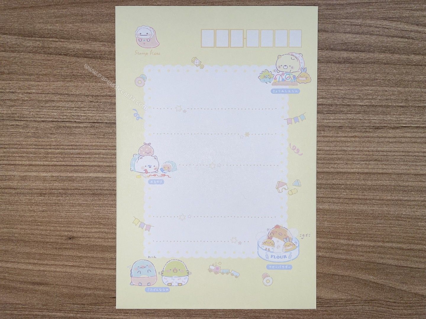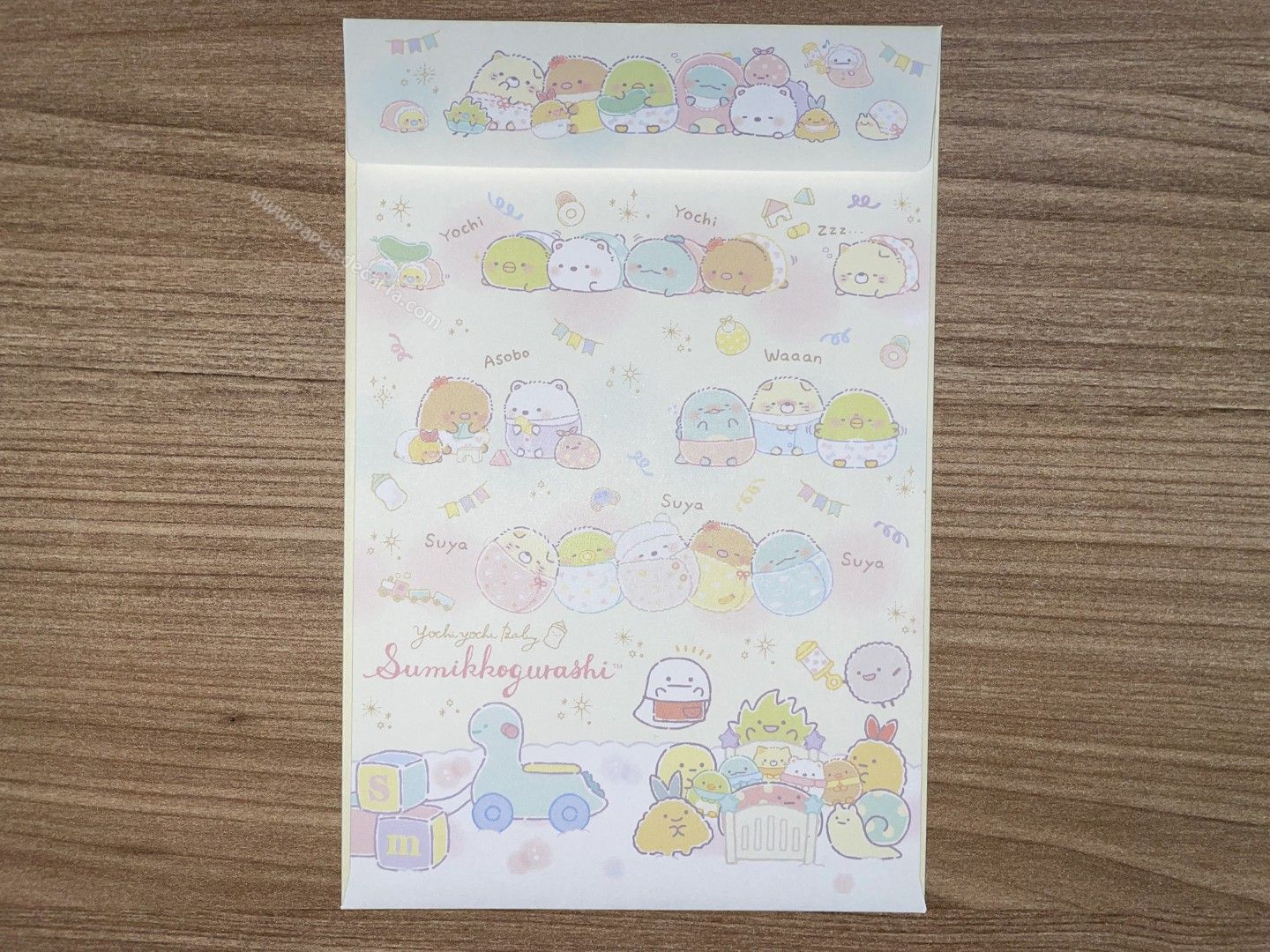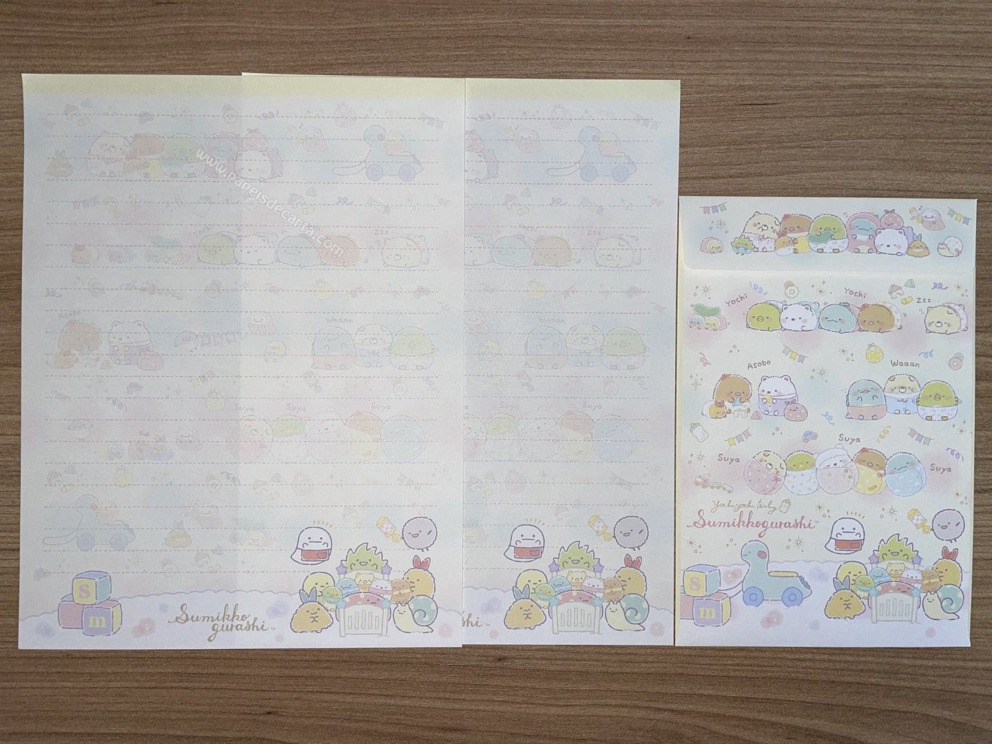 Conjunto importado, de papel de carta do Sumikko Gurashi da San-X, com 2 folhas e 1 envelope.