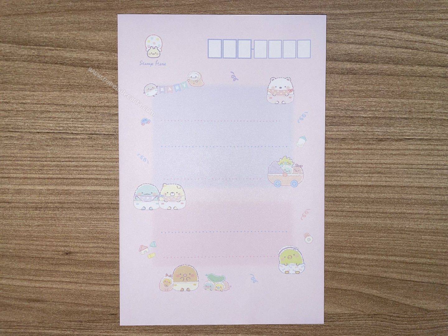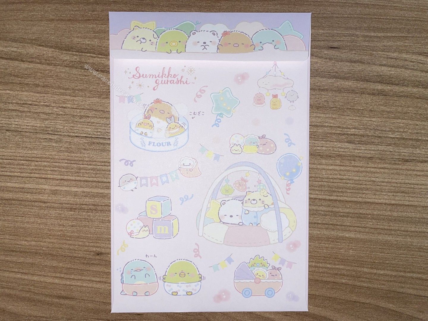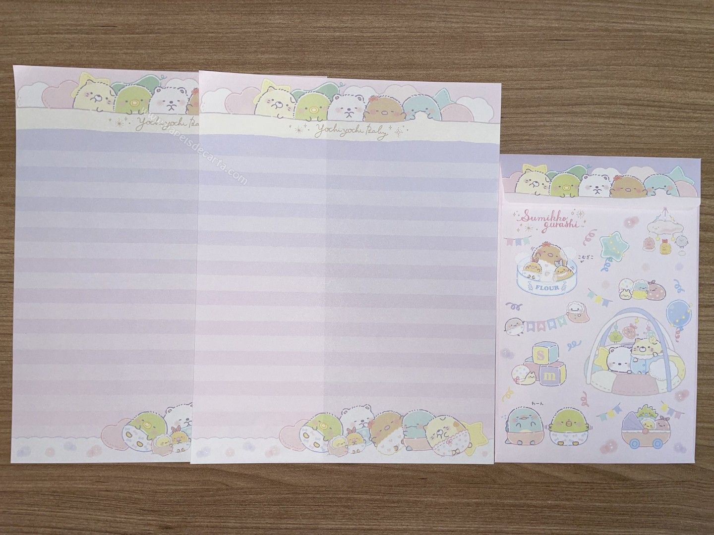 Conjunto importado, de papel de carta do Sumikko Gurashi da San-X, com 2 folhas e 1 envelope.