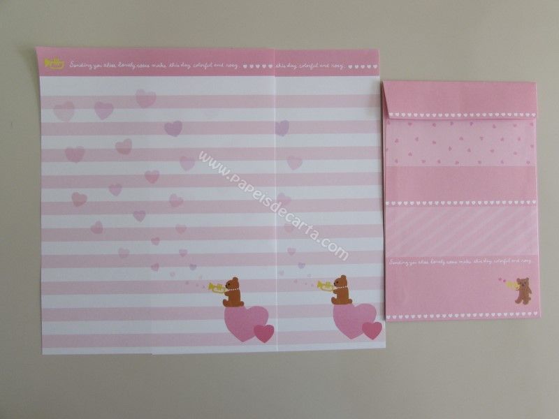 Conjunto importado, de papel de carta dos Hearts da San-X, com 2 folhas iguais e 1 envelope.