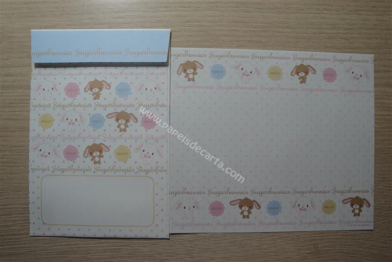 Conjunto importado, de papel de carta com 1 folha e 1 envelope do Sugarbunnies.