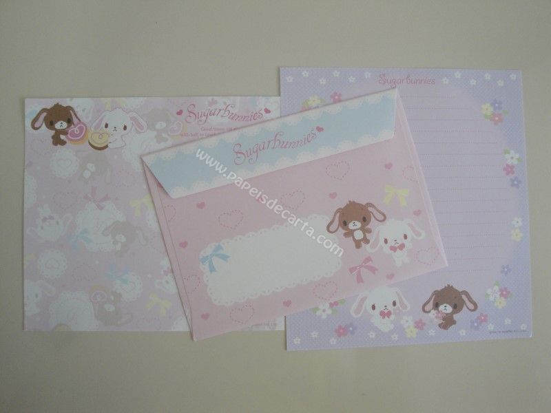 Conjunto importado, de papel de carta do Sugarbunnies, com 2 folhas diferentes e 1 envelope, da Sanrio.