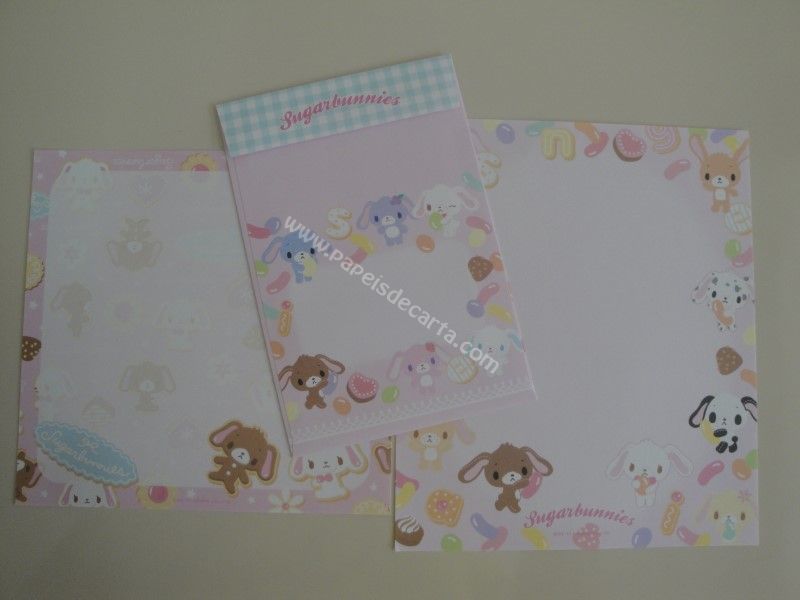 Conjunto importado, de papel de carta do Sugarbunnies, com 2 folhas diferentes e 1 envelope, da Sanrio.