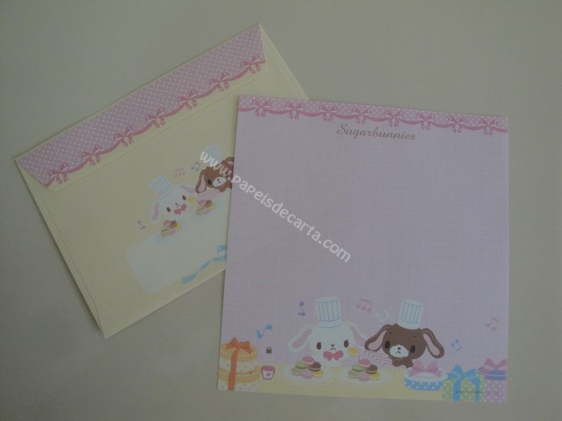 Conjunto importado, de papel de carta do Sugarbunnies, com 1 folha e 1 envelope, da Sanrio.