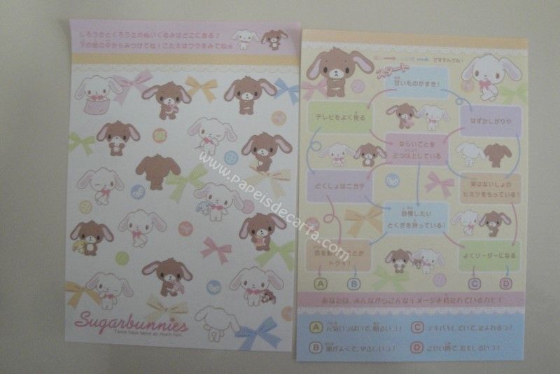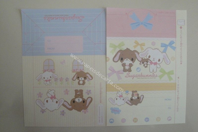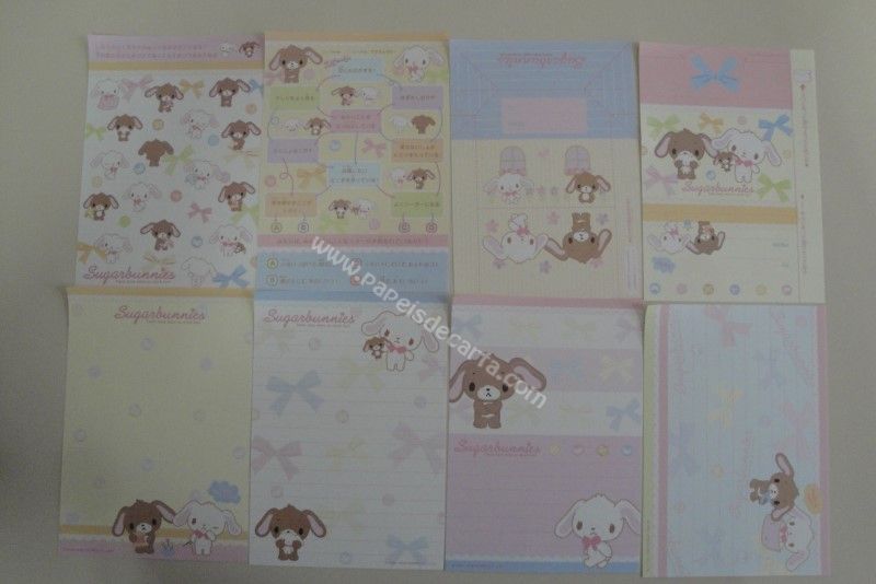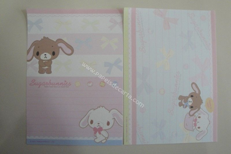 Conjunto importado, de papel de carta com 8 notinhas diferentes do Sugarbunnies.