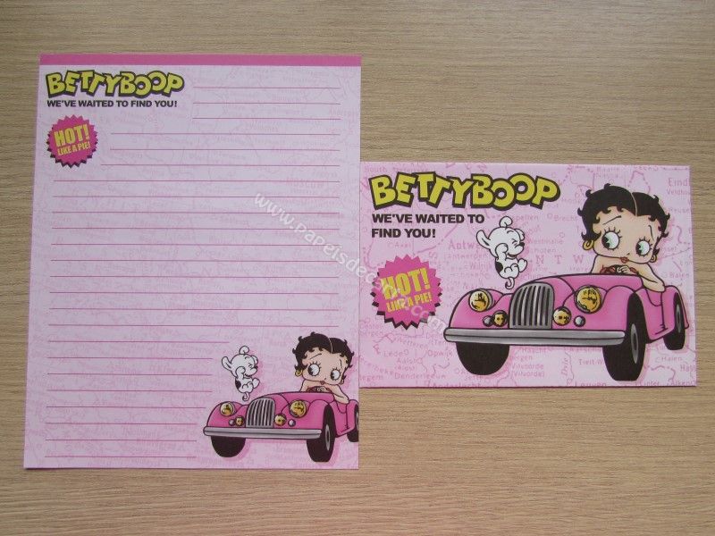 Conjunto importado de papel de carta da Betty Boop, com 1 folha e 1 envelope.