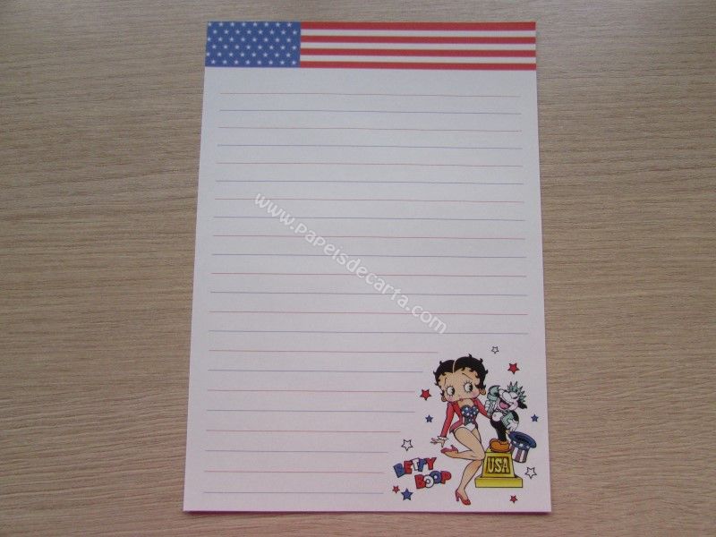 Papel de carta importado, tamanho médio da Betty Boop.