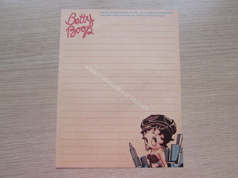 Papel de carta importado, tamanho médio da Betty Boop.