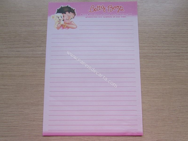 Papel de carta importado, tamanho médio da Betty Boop.