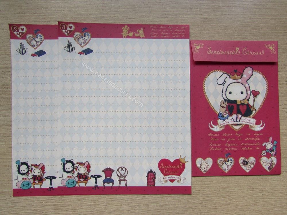 Conjunto importado, de papel de carta do Sentimental Circus, da San-X, com 2 folhas iguais e 1 envelope.