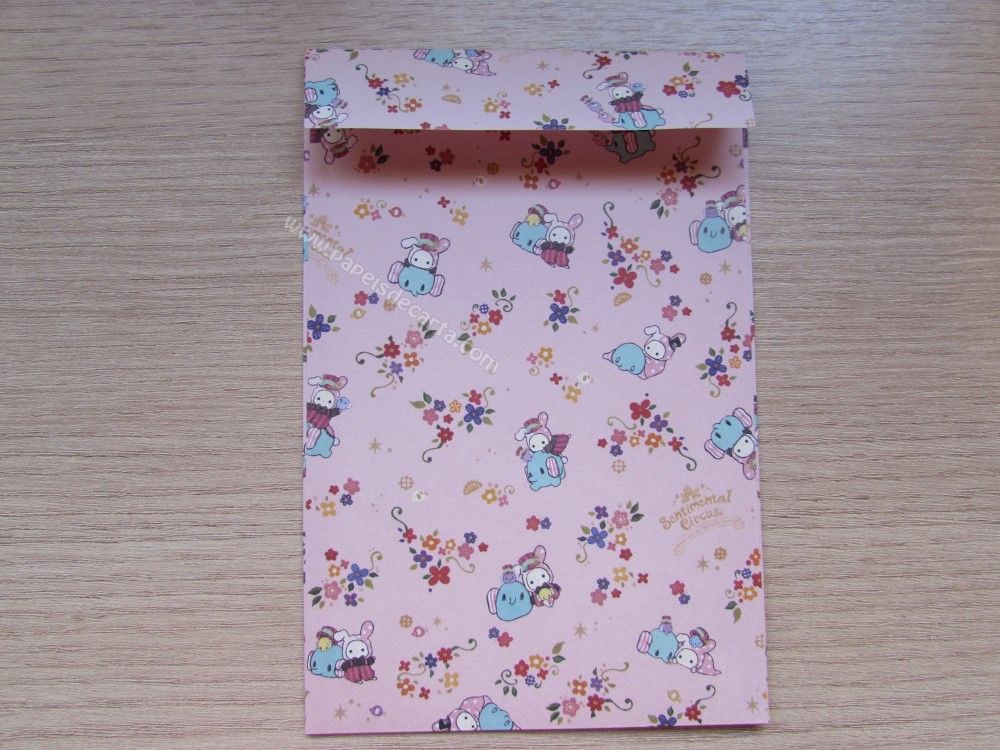 Conjunto importado, de papel de carta do Sentimental Circus, da San-X, com 2 folhas iguais e 1 envelope.