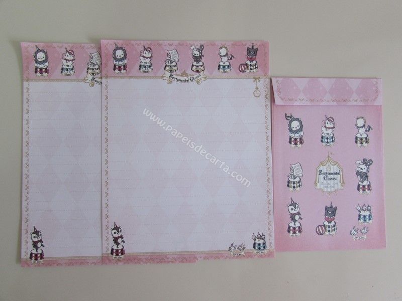 Conjunto importado, de papel de carta do Sentimental Circus, da San-X, com 2 folhas iguais e 1 envelope.