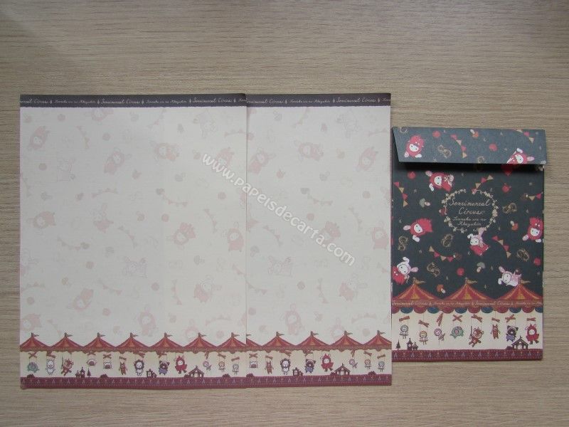 Conjunto importado, de papel de carta do Sentimental Circus, da San-X, com 2 folhas iguais e 1 envelope.