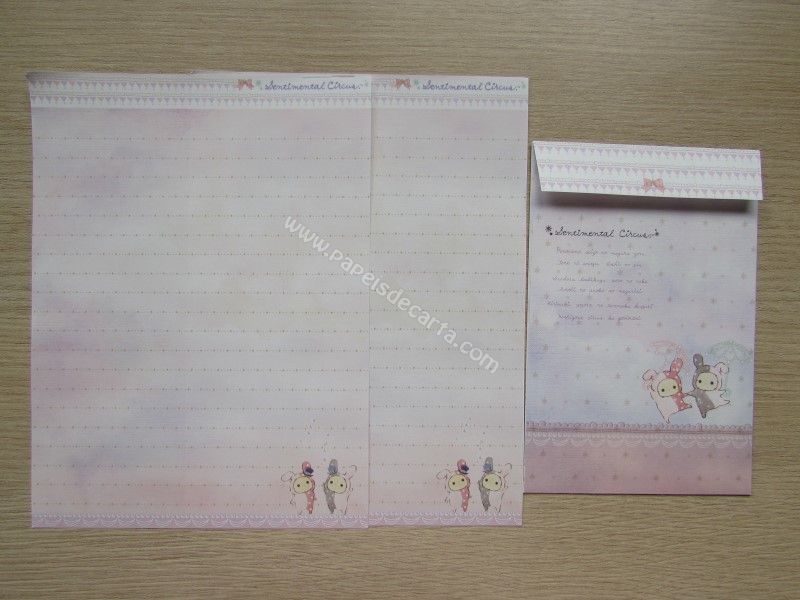 Conjunto importado, de papel de carta do Sentimental Circus, da San-X, com 2 folhas iguais e 1 envelope.