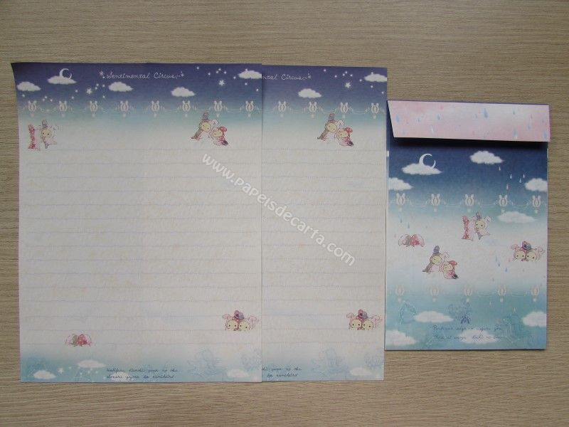 Conjunto importado, de papel de carta do Sentimental Circus, da San-X, com 2 folhas iguais e 1 envelope.