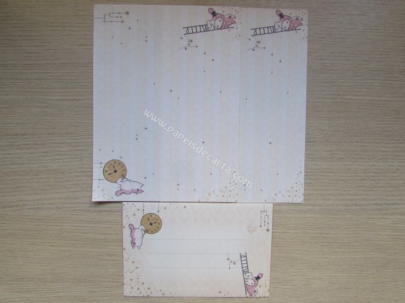 Conjunto importado, de papel de carta do Sentimental Circus, da San-X, com 2 folhas iguais e 1 envelope.