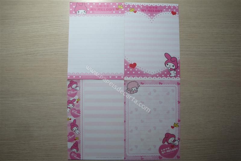 Conjunto importado, de papel de carta com 4 notinhas diferentes da My Melody.