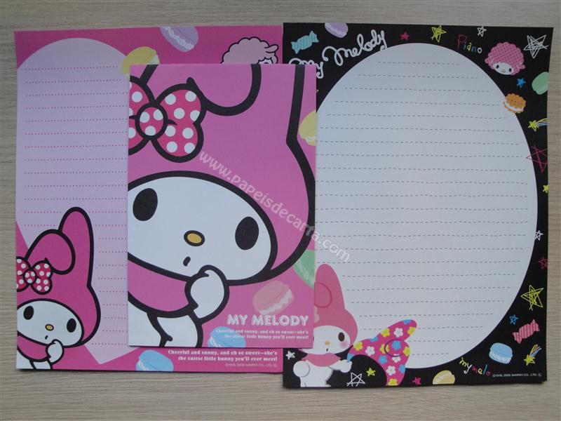 Conjunto importado, de papel de carta com 2 folhas diferentes e 1 envelope da My Melody.