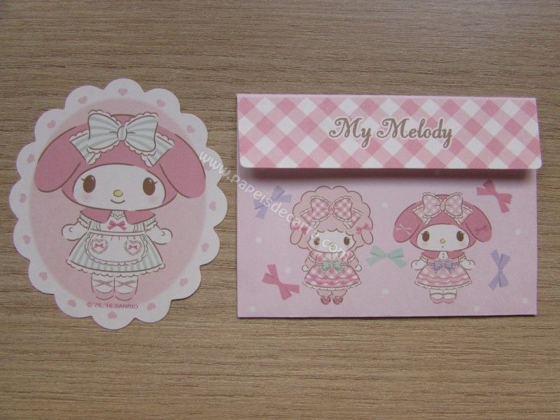 Mini Conjunto importado, de papel de carta da My Melody, com 1 mini folha e 1 mini envelope, da Sanrio.