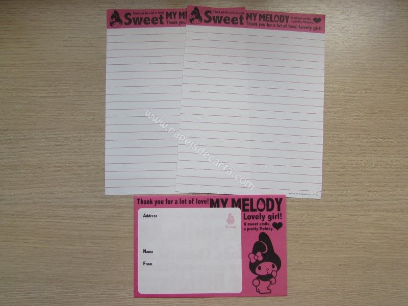Conjunto com 2 folhas e 1 envelope da My Melody 179