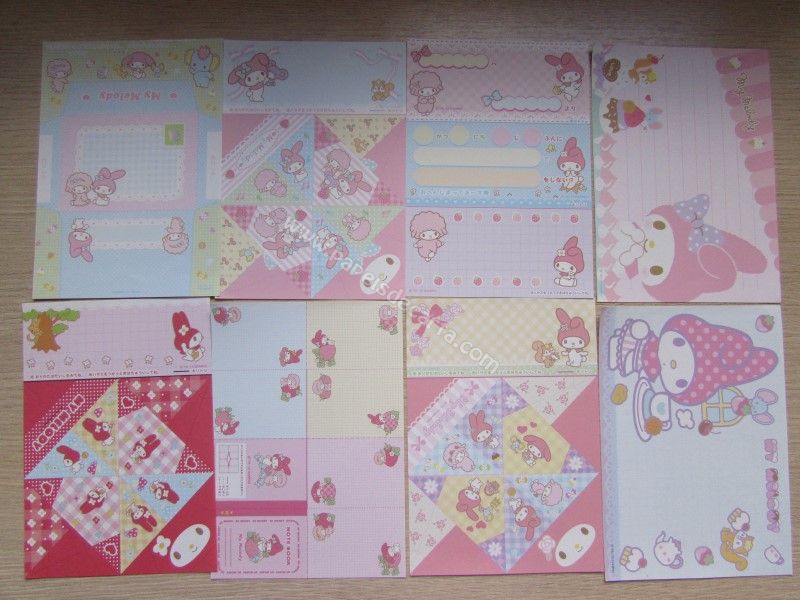 Lote de papel de carta importado, tamanho pequeno com 8 modelos diferentes da My Melody.