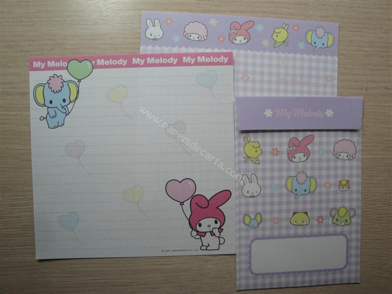 Conjunto importado, de papel de carta com 2 folhas diferentes e 1 envelope da My Melody.