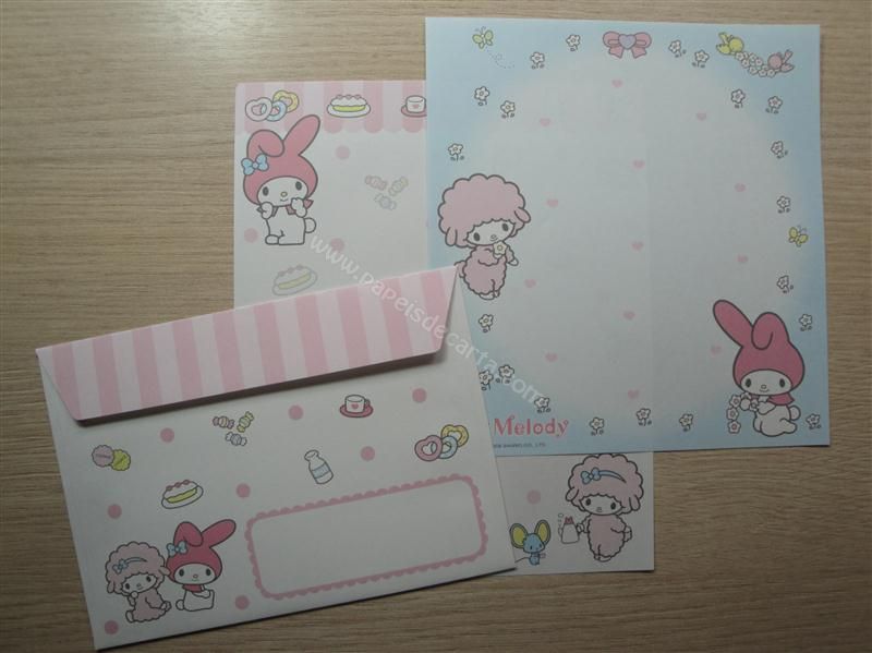 Conjunto importado, de papel de carta com 2 folhas diferentes e 1 envelope da My Melody.