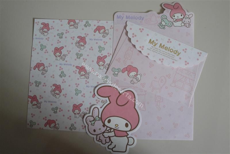 Conjunto importado, de papel de carta com 2 folhas diferentes, 1 notinha e 1 envelope da My Melody.