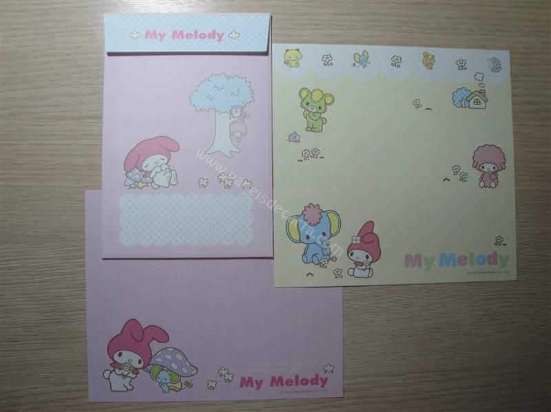 Conjunto importado, de papel de carta com 2 folhas diferentes e 1 envelope da My Melody.