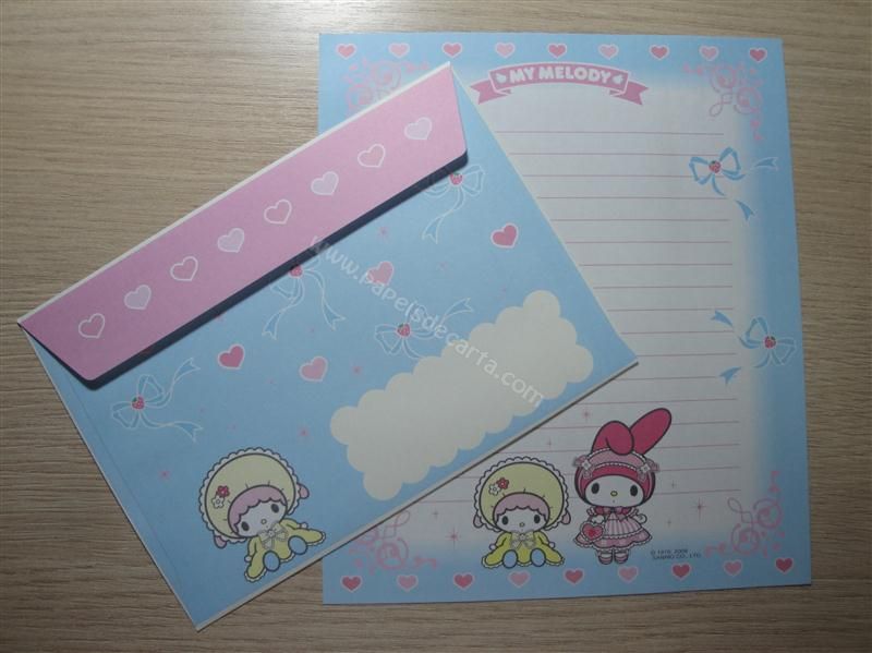 Conjunto importado, de papel de carta com 1 folha e 1 envelope da My Melody.